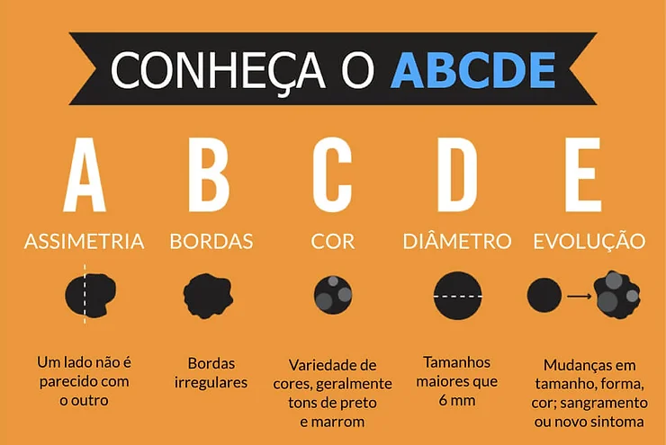 Tendo em conta que estamos em Portugal, um país ensolarado por natureza, é importante que faça o seu autoexame e vigiar de perto os seus sinais. A conhecida mnemónica é ABCDE: